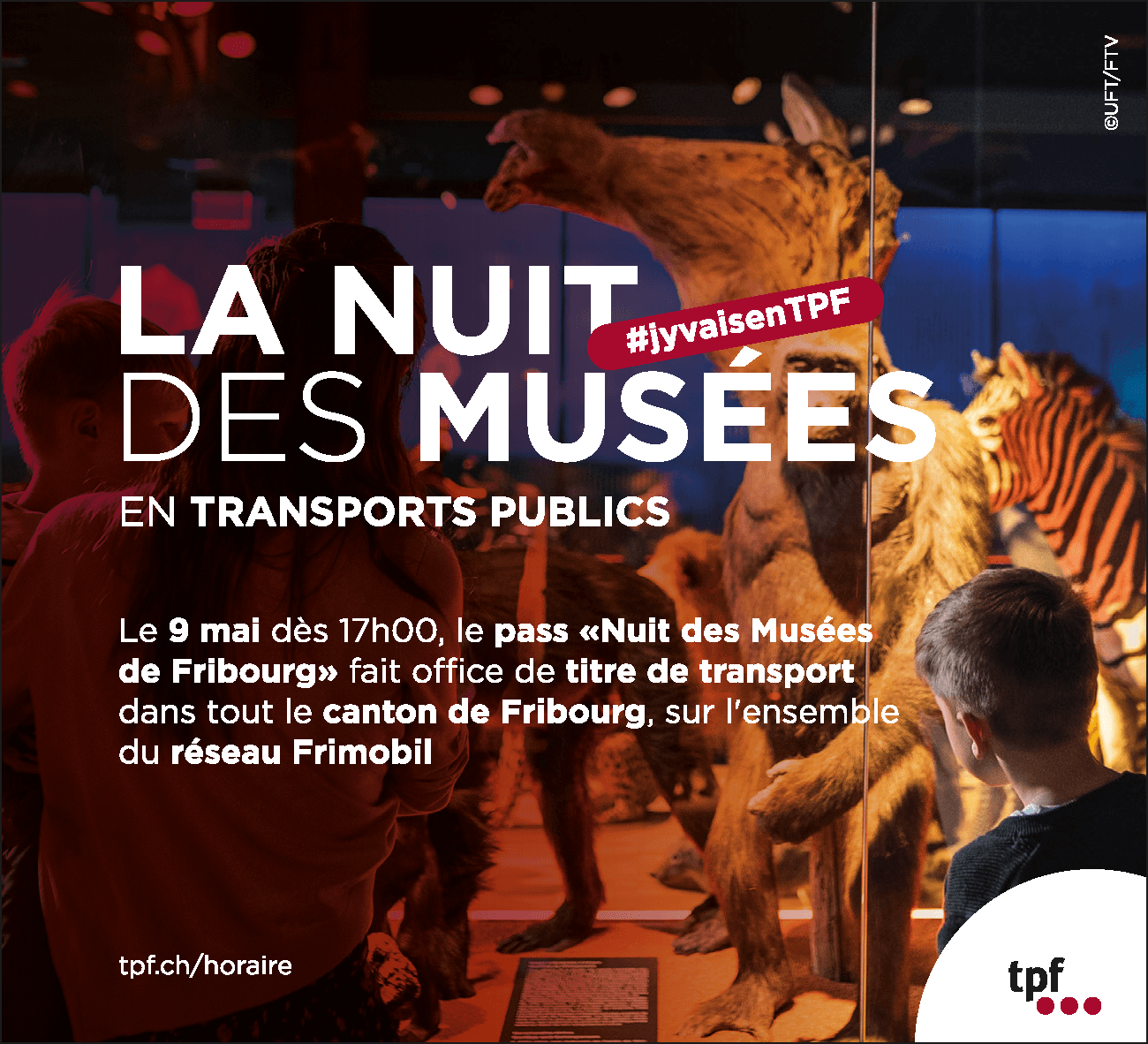La 16e édition de la Nuit des Musées de Fribourg offre un large panorama des institutions muséales de la région. Cette édition poursuit l’extension dans la Broye et le Lac et devient intercantonale. Le Musée de Morat, DasDEPOT.ch, le Musée d’Estavayer-le-Lac et ses grenouilles et le Musée romain de Vallon sont rejoints par le Musée Clin d’Ailes, l’Abbatiale de Payerne et les Site et Musée romains d’Avenches. Au total, ce sont 26 lieux qui ouvrent leurs portes durant la soirée du 9 mai 2026, de 17 h à 23 h. Le thème choisi pour cette édition est « Power Play » en écho avec le Championnat du monde de Hockey sur glace qui se déroulera dans la capitale fribourgeoise du 15 au 31 mai 2026. Au travers de cette thématique, les musées inviteront les visiteur·euse·s à découvrir les trésors de leurs collections et les multiples activités préparées pour l’occasion.