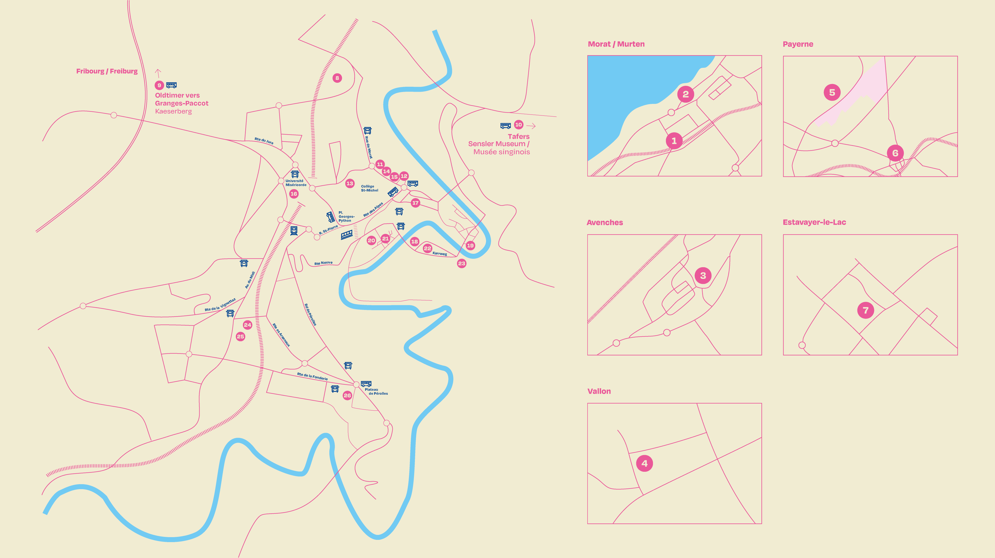 À l'achat du billet, les visiteur·euse·s bénéficient de l'accès gratuit à l’entier des zones Frimobil ainsi qu'au funiculaire, aux navettes spéciales à destination du Sensler Museum à Tafers, du Musée du Vélo à Fribourg et du Kaeserberg à Granges-Paccot. Un bus oldtimer fera également la navette entre Morat, Avenches, Vallon, Payerne